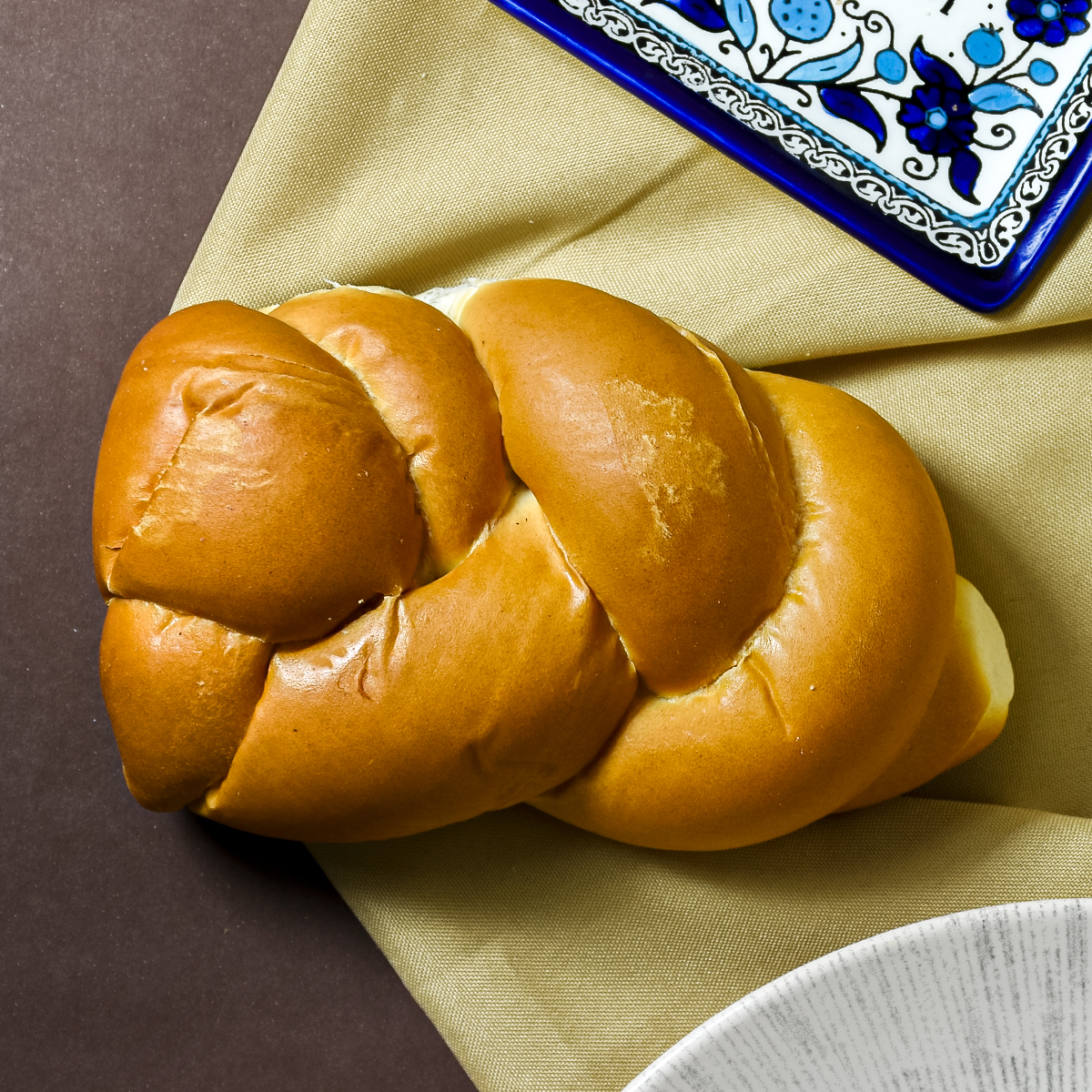 Nuestra jalá es el corazón de cada mesa. De miga suave y esponjosa, con una trenza dorada y delicadamente brillante, combina textura aireada con un toque apenas dulce que la hace irresistible. Perfecta para Shabat, celebraciones o para disfrutar en familia.